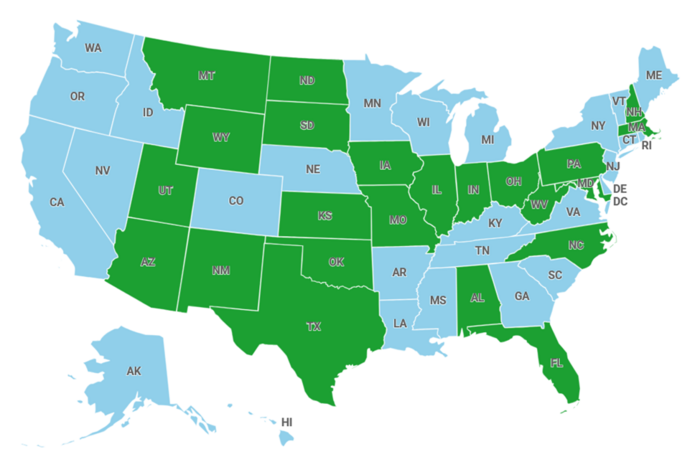 U.S. Map of States Pursuing Strategic Bitcoin Reserve Legislation (In Green)